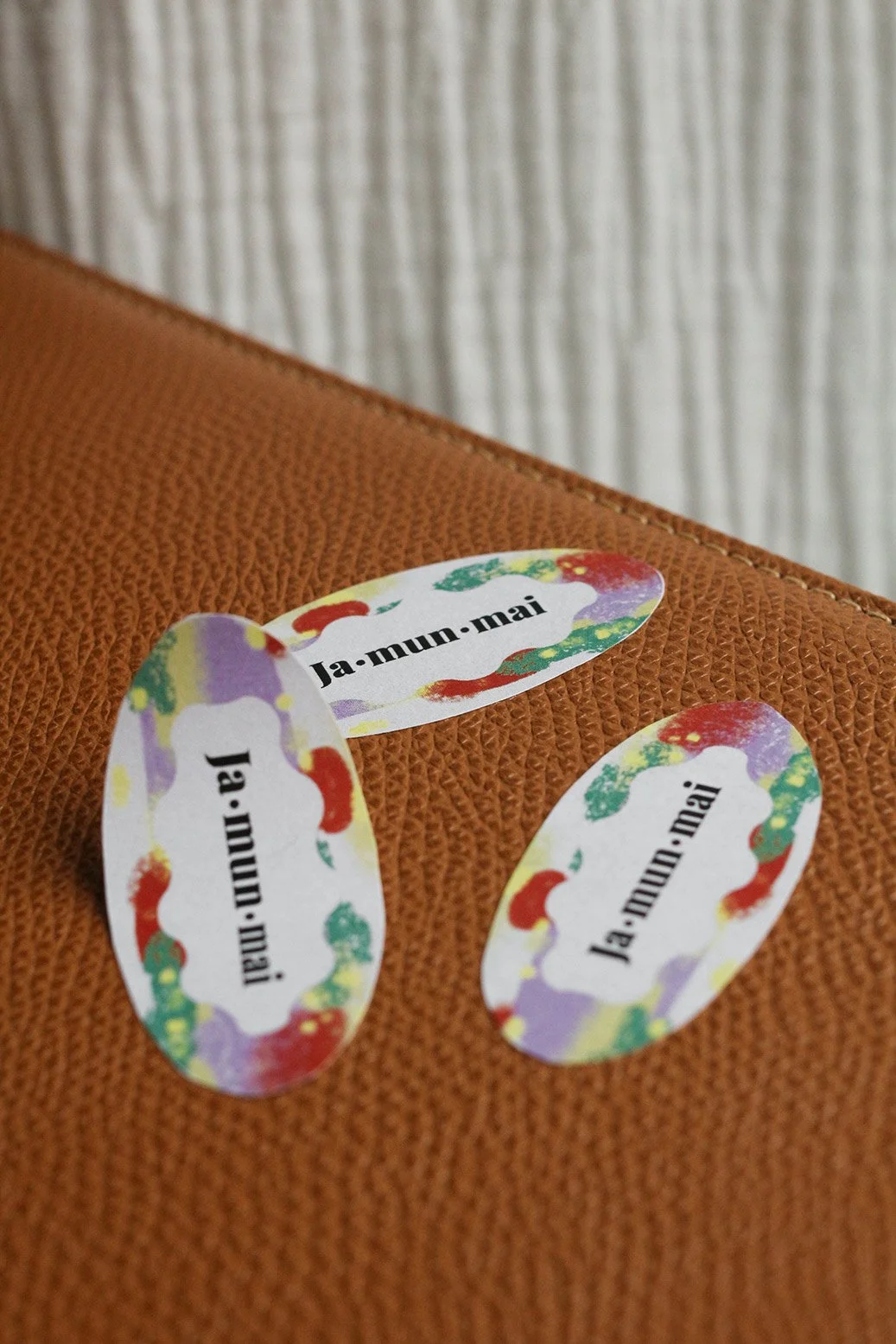 Sur les supports de communication liés à Myanmar (Birmanie), nous avons introduit des pictogrammes issus d’un dialecte ancien originaire des Chin, groupe ethnique minoritaire birman utilisant la broderie pour raconter des scènes de vie. Cette "langue du tissu" disparaissant avec le temps, Jamunmaï a voulu le réintroduire et permettre aux artisans de perpétuer leur savoir traditionnel à travers la mode.